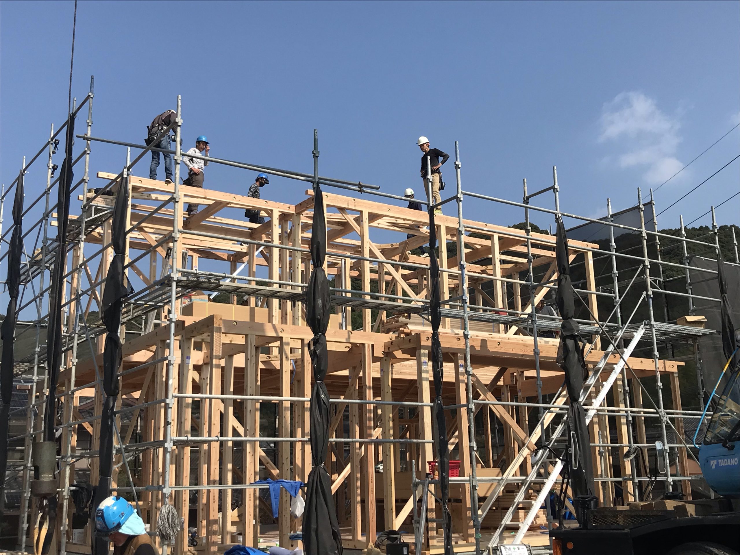 基礎の状態から一気に家の形になっていく様はいつ見ても鳥肌ものです。お客様も家が建っていく実感がわくと喜んでくださっていました!