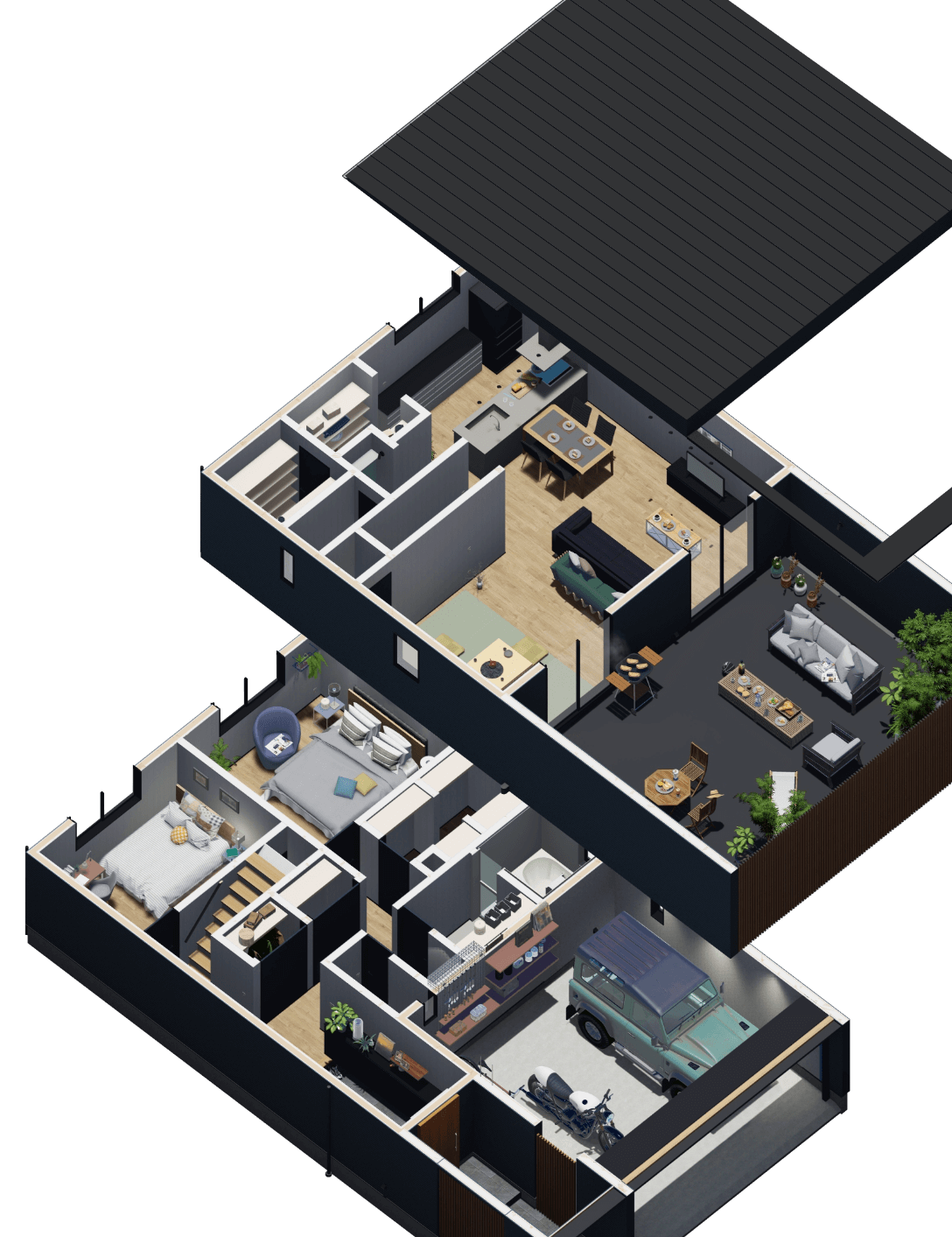 ルーフテラスとガレージを楽しむ