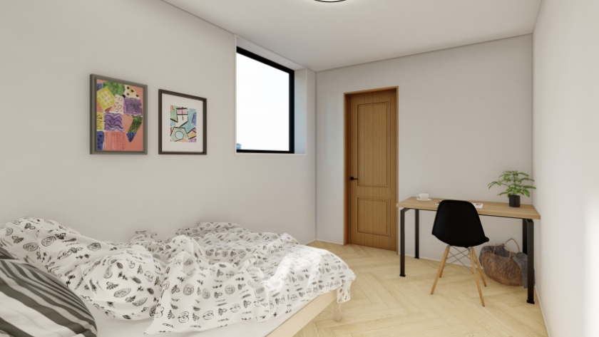 階段をリビングと別空間で仕切って独立させることにより
