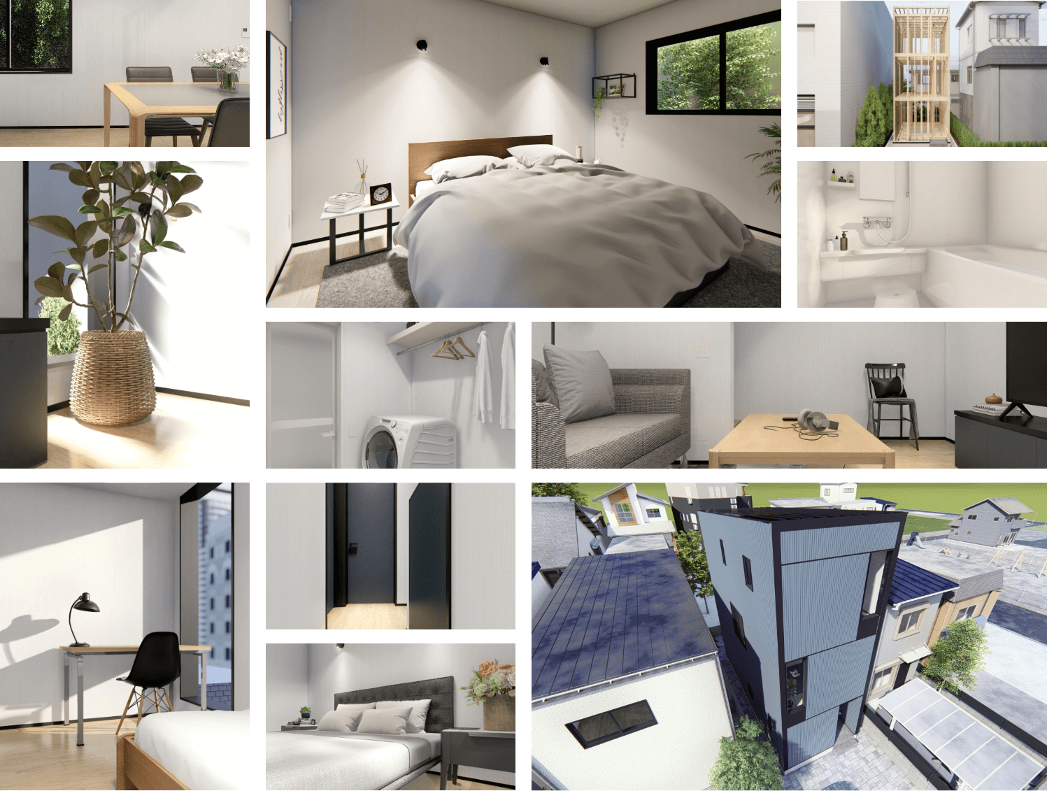 室内に効率的に採光できるような窓配置、機能だけでなくデザイン性も