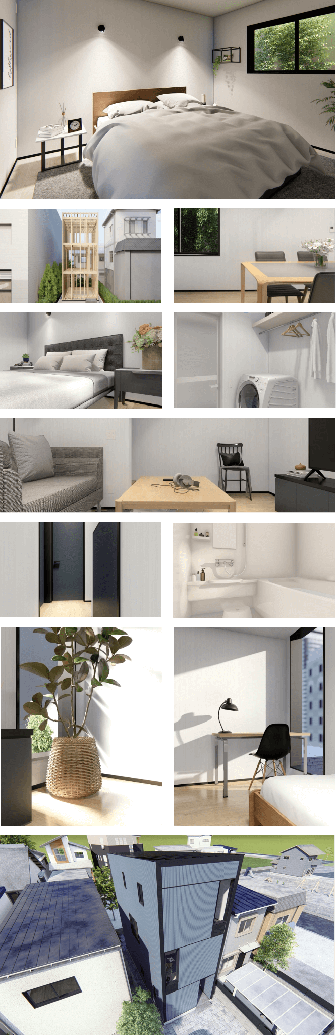 また、建物の輪郭(フレーム)を少し太めにとることで、建物の陰影を明確にし、