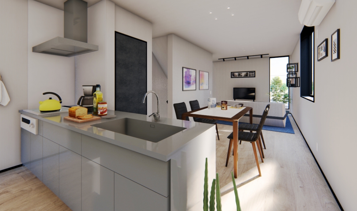 1Fには水回りと主寝室、2Fには家族が集まるLDK、