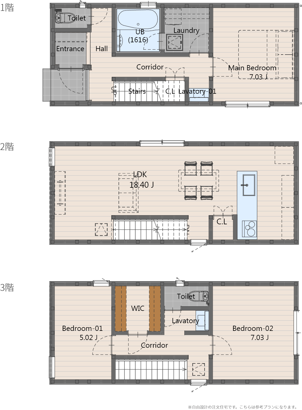 1Fに水回りとLDKを配置した、「暮らしやすさ」を重視した