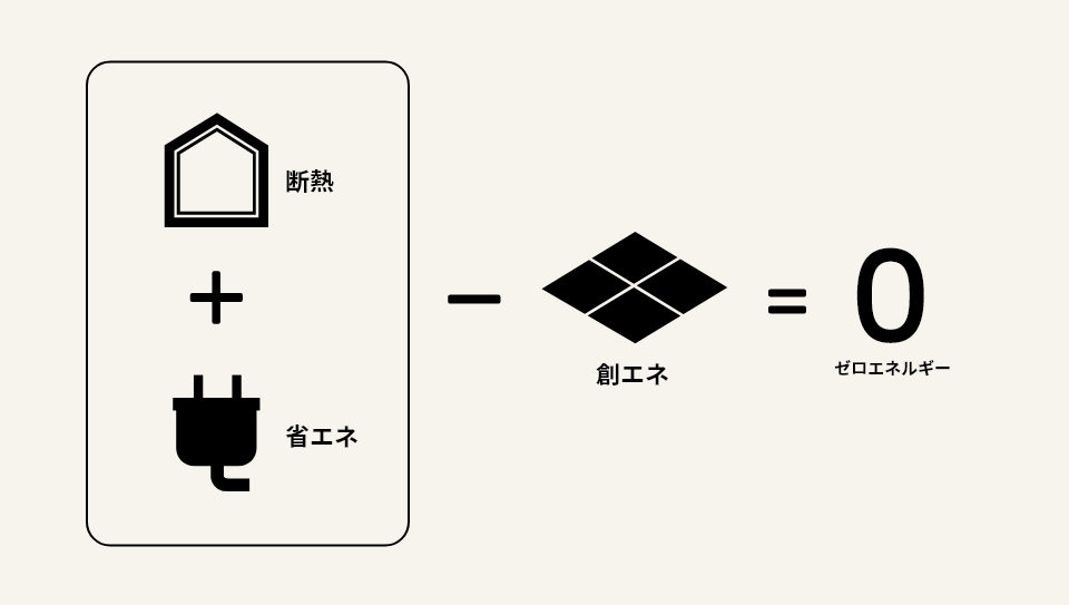 - 住宅の躯体・設備の省エネ性能を向上、さらに効率的な住宅設備や再生可能エネルギー(太陽光発電等)をプラスすることで、一般住宅で年間消費するエネルギーの収支がほぼゼロになる住宅のことです。
