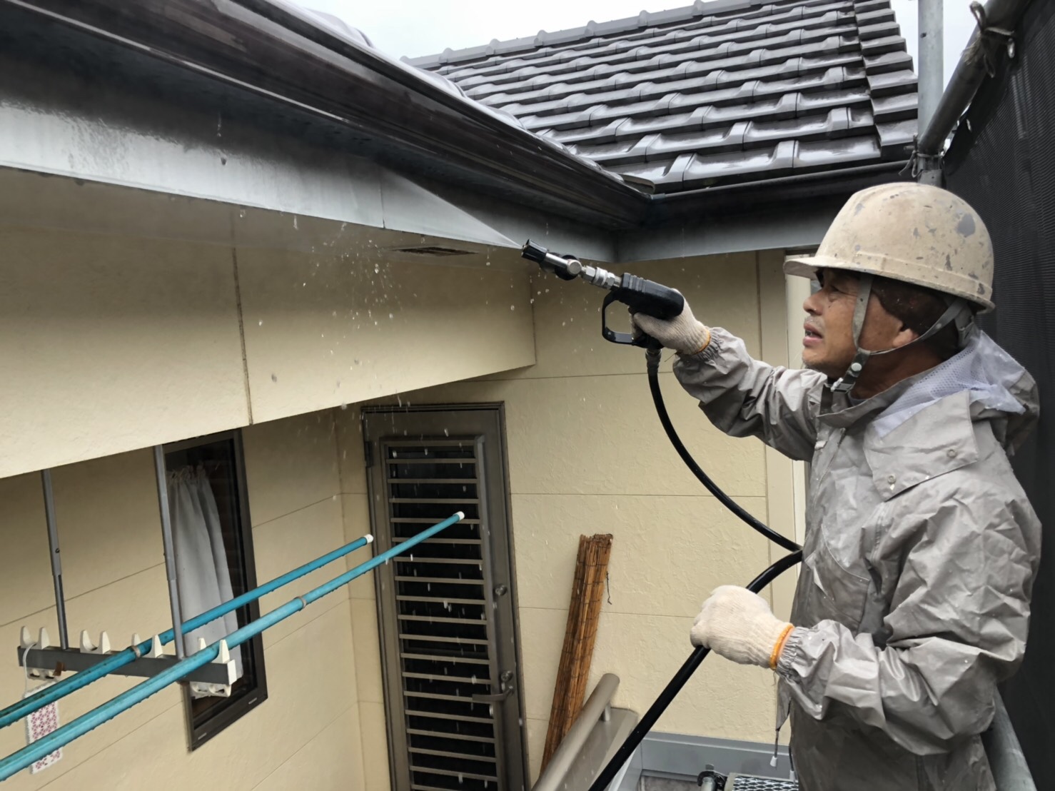 水曜日に高圧洗浄にて外壁を綺麗に洗い流しております。