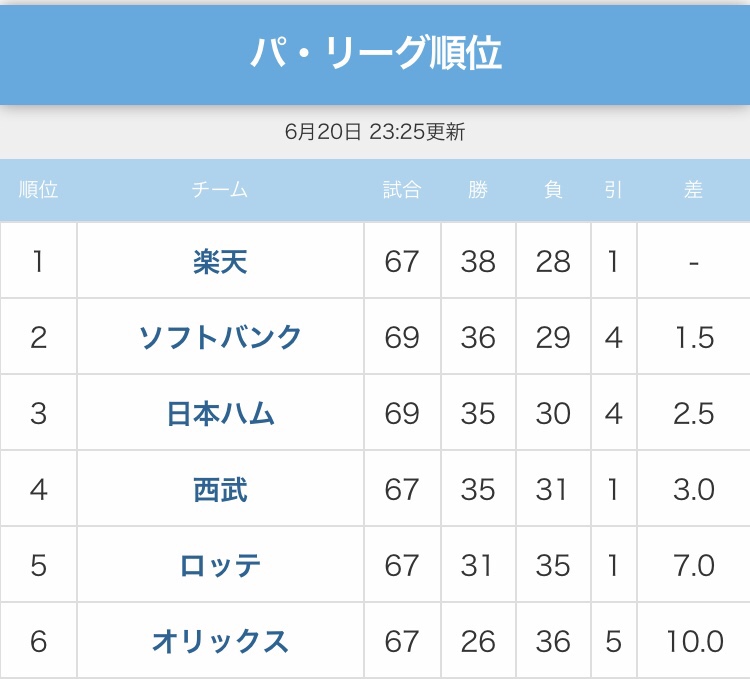 パ・リーグでは台風の目と予想していた楽天が予想以上の頑張りで