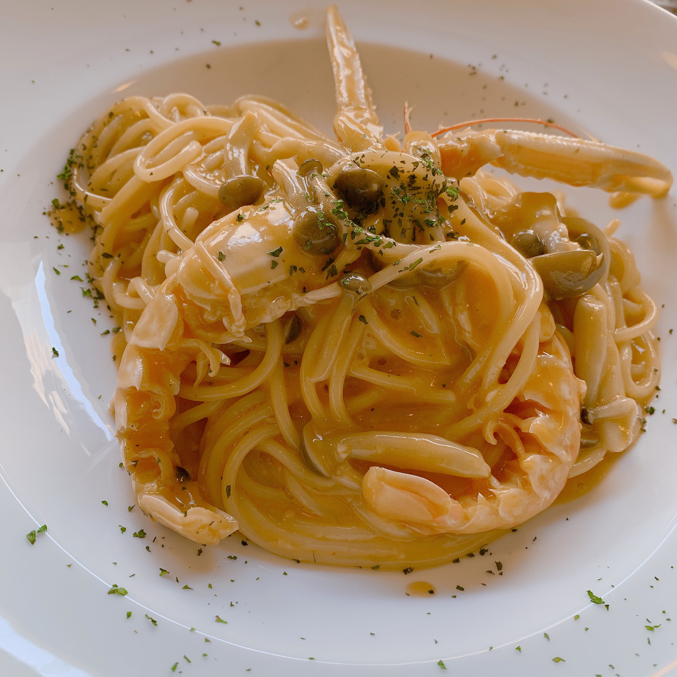 エビがまるまる乗った、ビスクソースのパスタを選びました!!