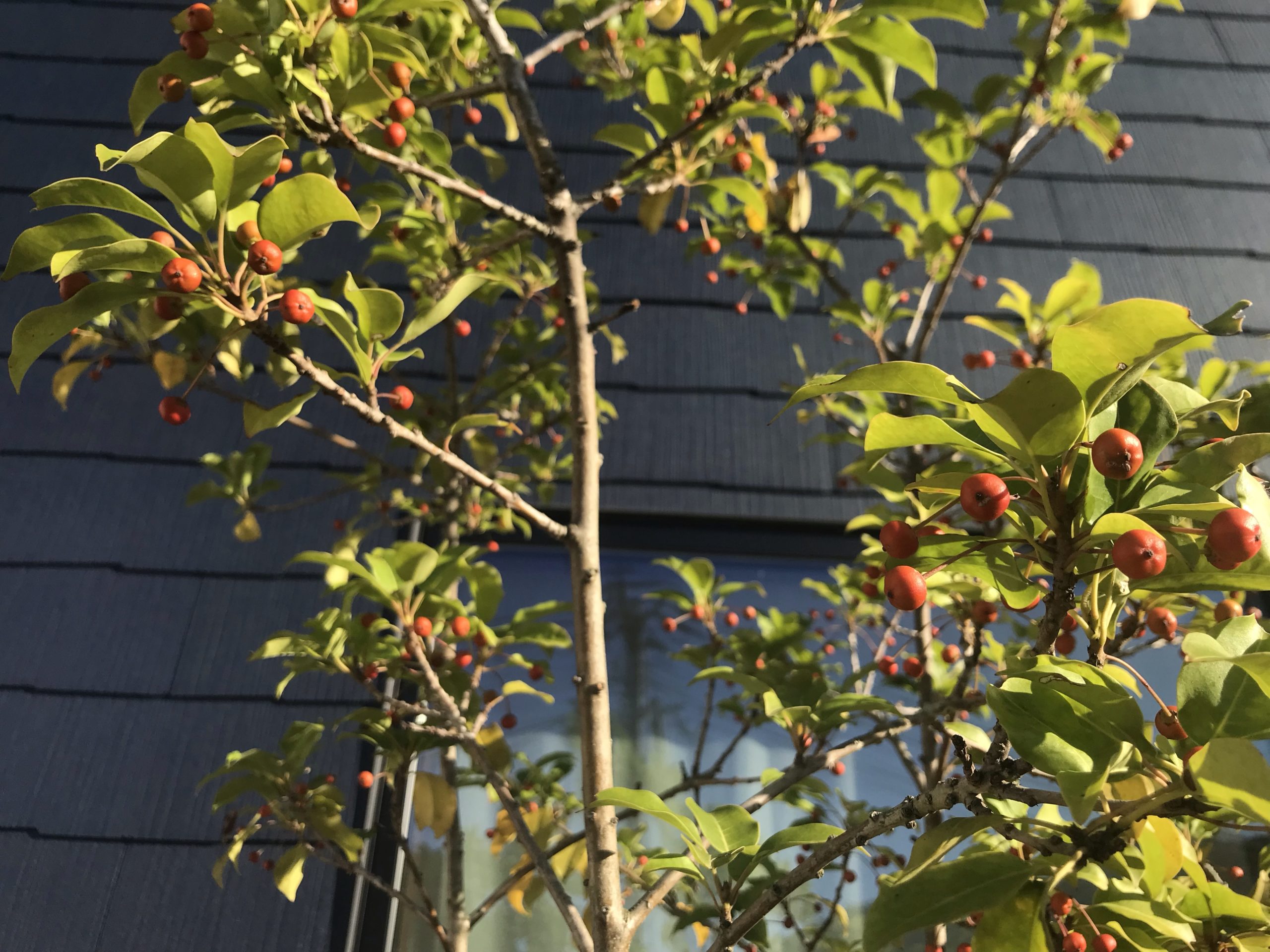 今朝自宅をでると庭のヤマボウシに実がついているのに気づきました。