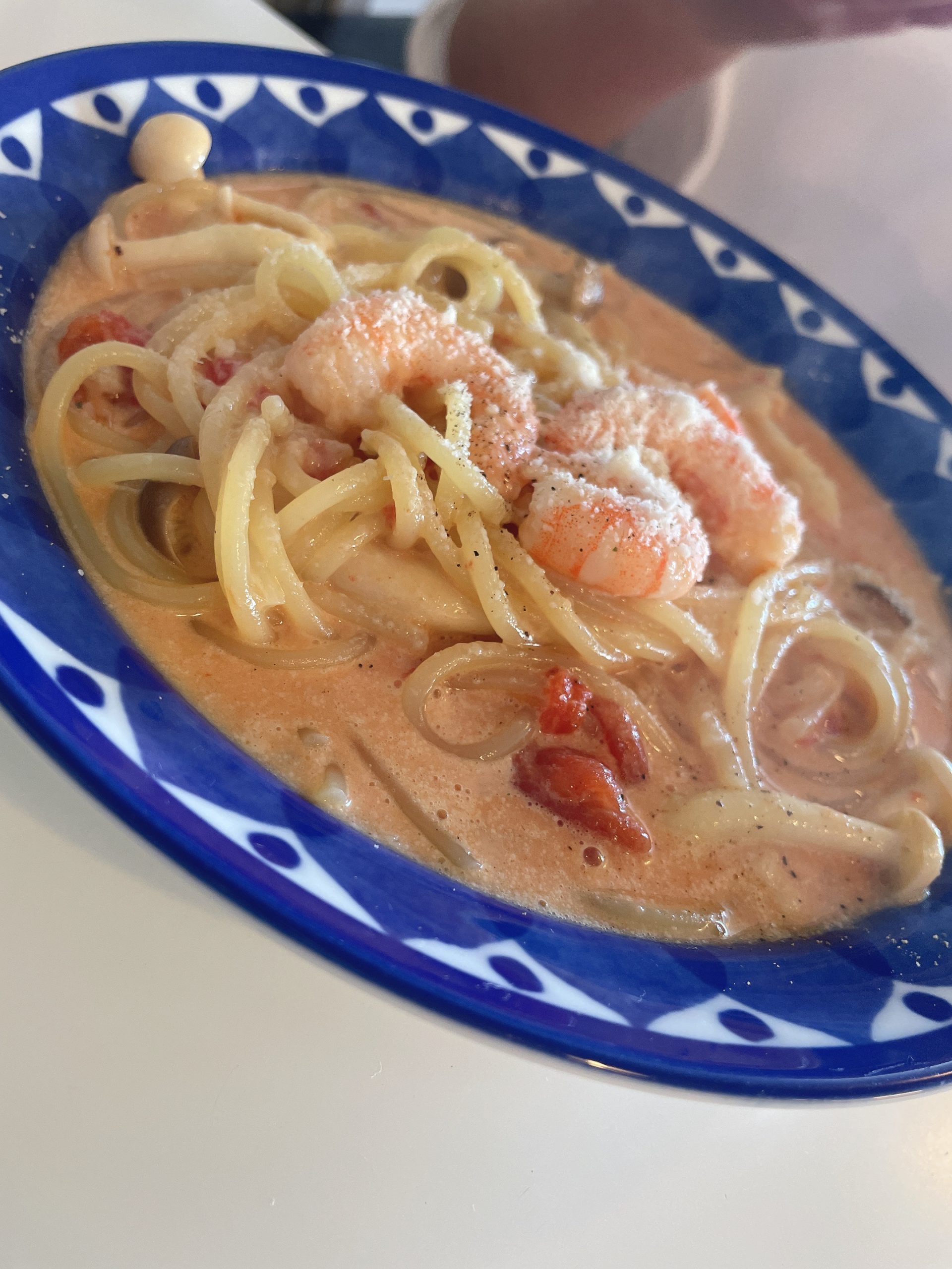 エビときのこのトマトクリームパスタ😋
