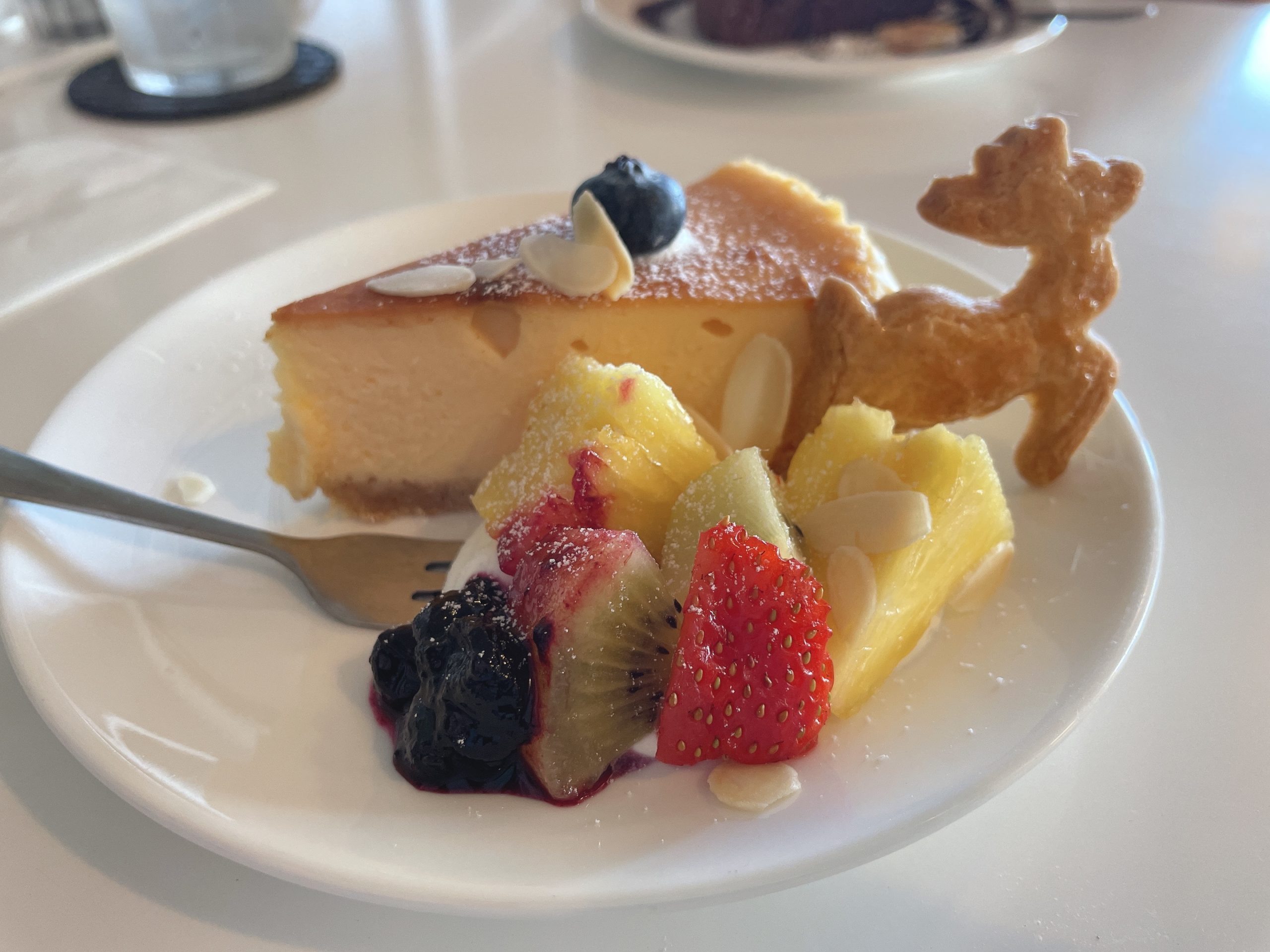 デザートのケーキにトナカイ🦌のクッキーが🥰