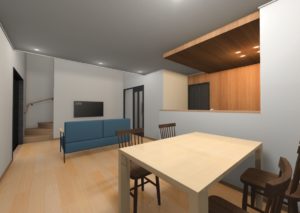 リビングダイニングも13畳程の広さに吹き抜けを付けておりますので、広々と感じれます!