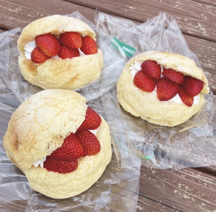 メロンパンにいちごを挟んだ美味しそうな食べ物もあり、いただきました!