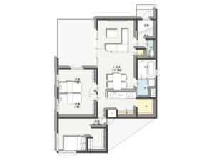 西南のテラスは道路から見えにくいコンクリート壁を施し、デザインの一つにしています。