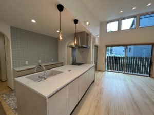今回キッチンはペニンシュラキッチンのフラット対面型になります。