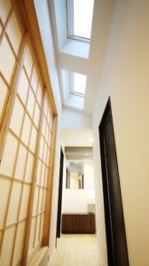 廊下上部に設けたトップライトから差し込んだ光は、障子を介して優しい光となり和室に差し込みます。
