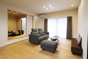 リビングの横に設けているので、建具を開けるとリビングと一体感もでてさらにリビングが広く感じます。