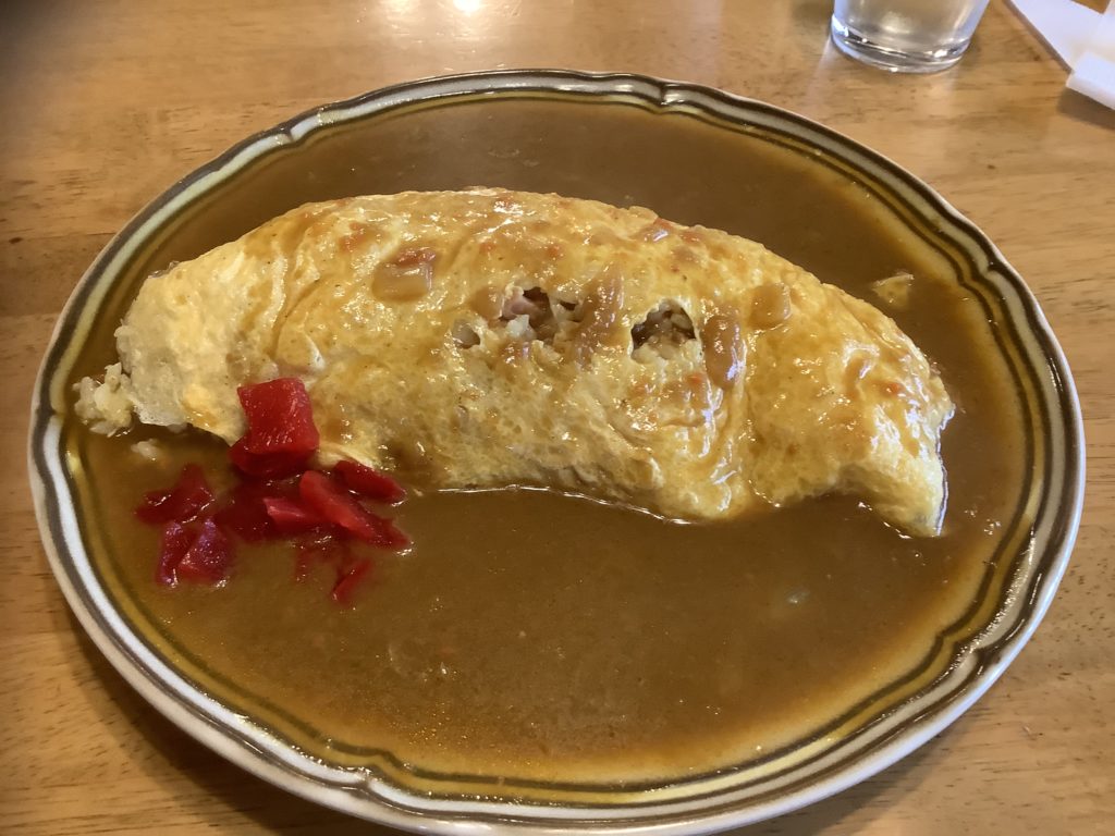 ハムライスのオムライスにカレールーがかかっている料理でボリュームもあり大変満足な料理でした😊