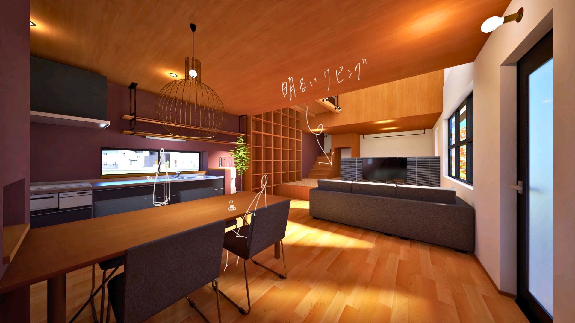 メインのリビングは、掃出し窓よりも小さな窓を組み合わせた連段窓を選択しました。この決定には理由があります。L字型のソファを壁にピタッと寄せて配置することができるためです!