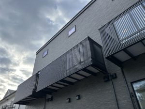 新築住宅では最近ベランダ自体を採用しないプランも増えてきているのでアルミベランダを採用することが少ないのですが、デザイン性のあるベランダであれば建物が良く見える効果がでます。