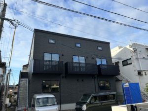 早いところでは1月5日から現場での工事はスタートし、愛宕町のアパート新築工事においてはアルミベランダ施工が行われました。
