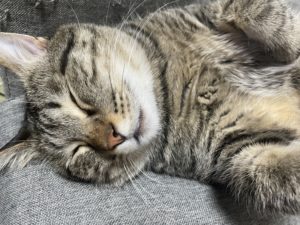 撫でられていい気になった「一生」くんはスヤスヤ