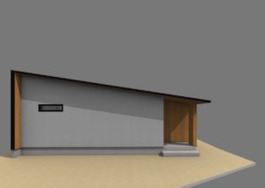 外観は片流れ屋根で西側ファザードを意識してデザインしました。