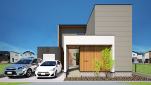 外観は、四角いキューブを組み合わせたような直線的でモダンなデザインです。