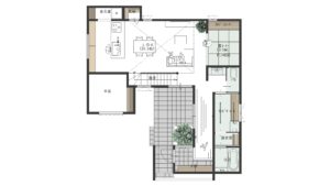 ポーチを通り抜けると、プライベートな雰囲気の中庭が広がっています。
