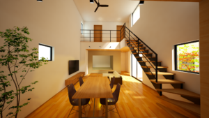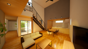 ご提案させていただいたコンセプトは、南道路に面した敷地で道路からの視線を遮ると同時に、開放感のある室内空間を実現することでした。