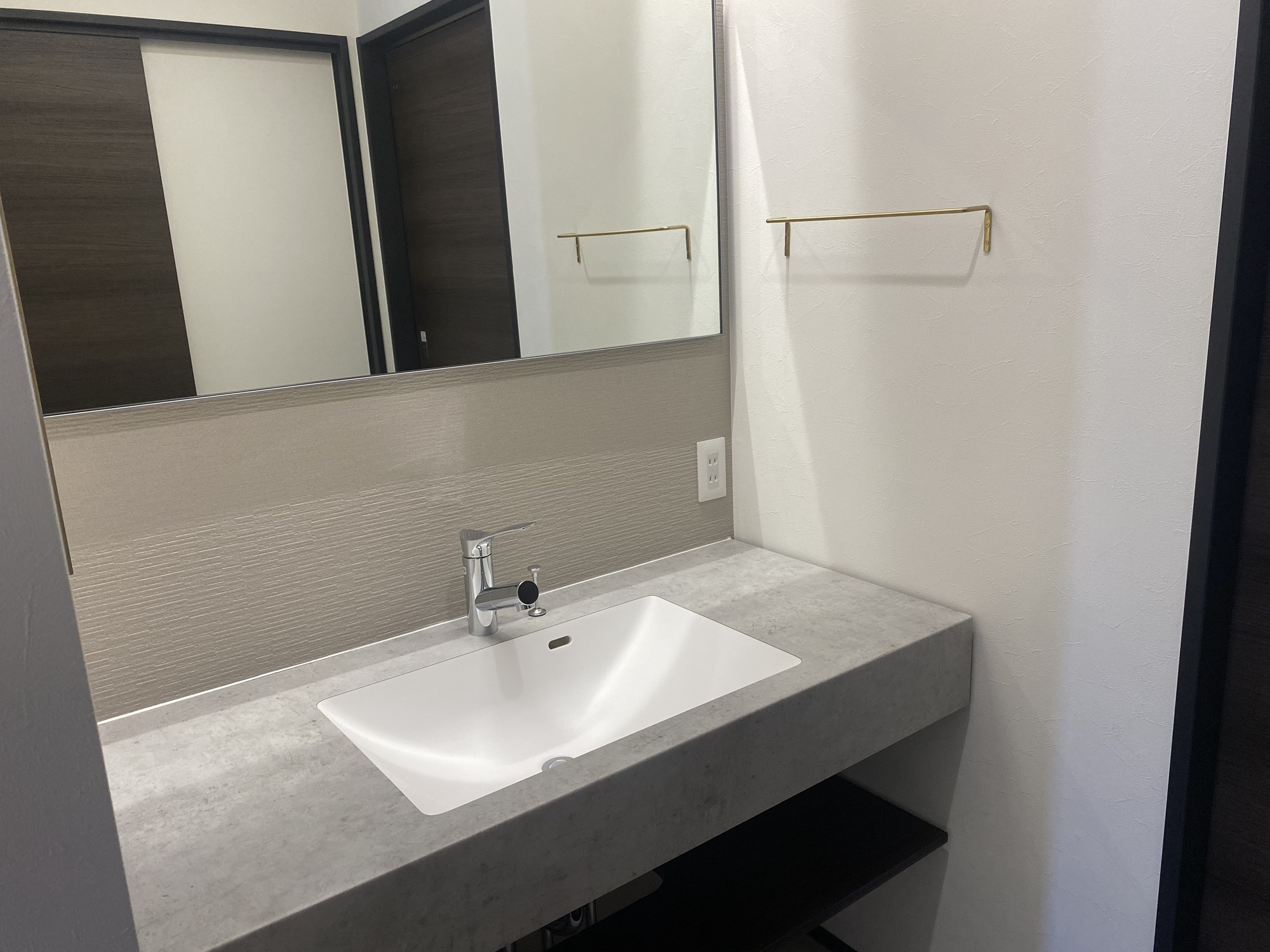 こちらの洗面台はカウンターとボウルが一体になっているのがポイントです。