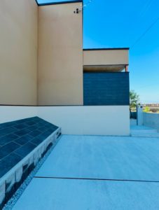 モルタル外壁の仕上げ材で塗料に骨材(砂や砂利)を配合した塗材で、見応えあります。