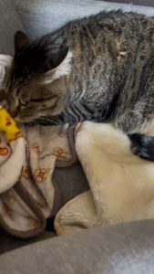 ブランケットをふみふみする愛猫の姿です!笑