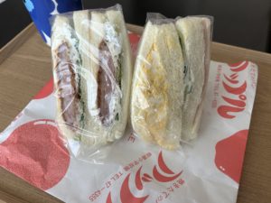 お目当てのタマゴサンドはミックスサンドとして売られていて、手に取るとずっしり重さを感じる重量感のあるものでした😋