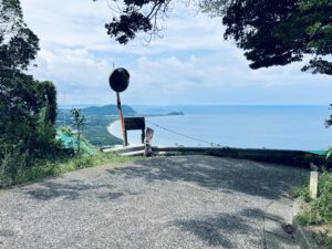 「火山はこちらです」と言う案内板が出ているので、分かりやすいです!自分は瑠璃光寺に参拝し、そこに車を停めて15分ほどウネウネした道を登ると、電気設備所があって、そこからさらに歩いて登ると、頂上にもう一つ電気設備所があって、その敷地を回り込んで、海側へ向かうと、以下のような絶景に出会えます。是非、行ってみて下さい?