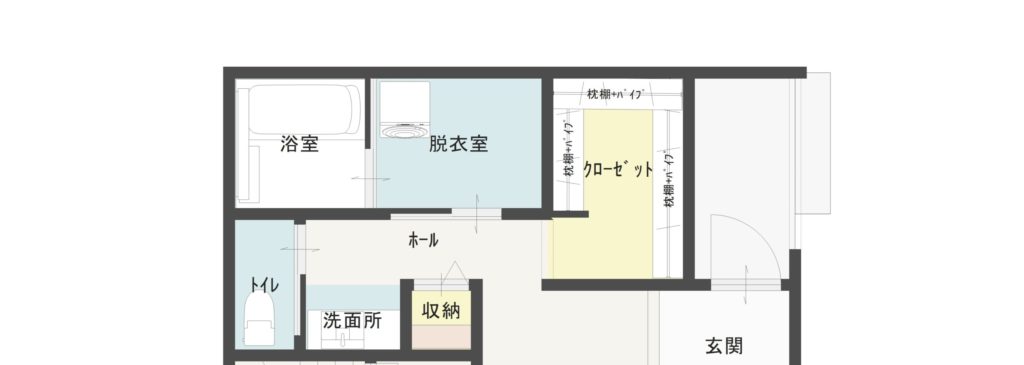 脱衣室や洗面室の一角にタオルや下着を“ちょい干し”できるバーを設けるのもおすすめです。