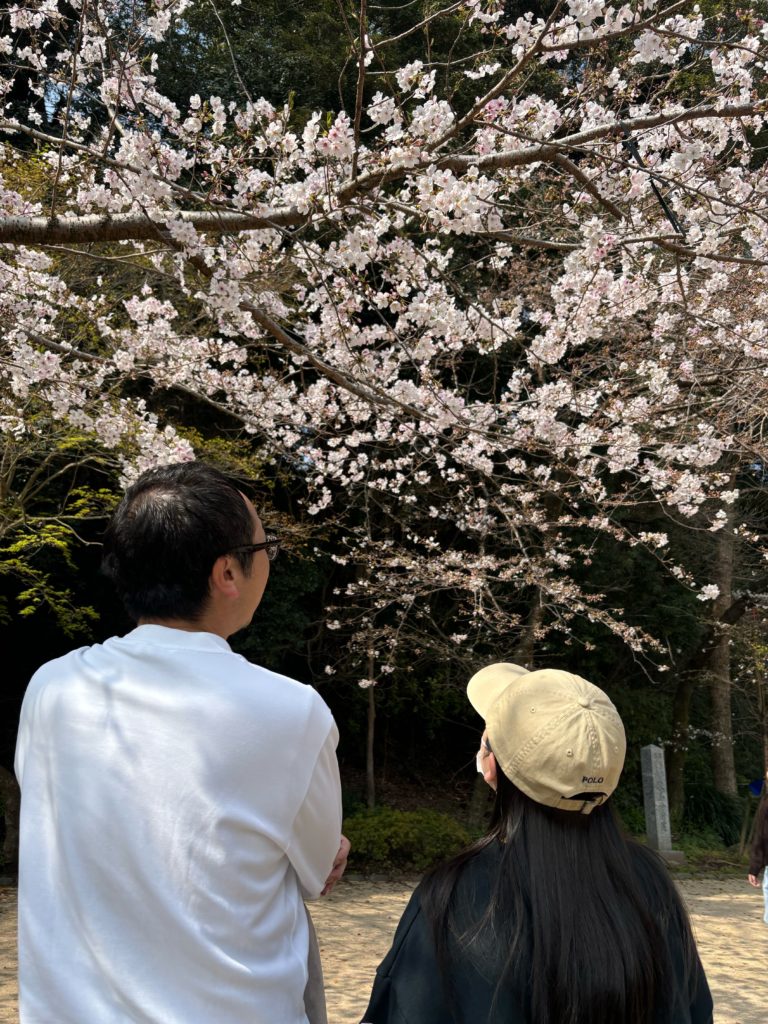 親子で桜を鑑賞中
