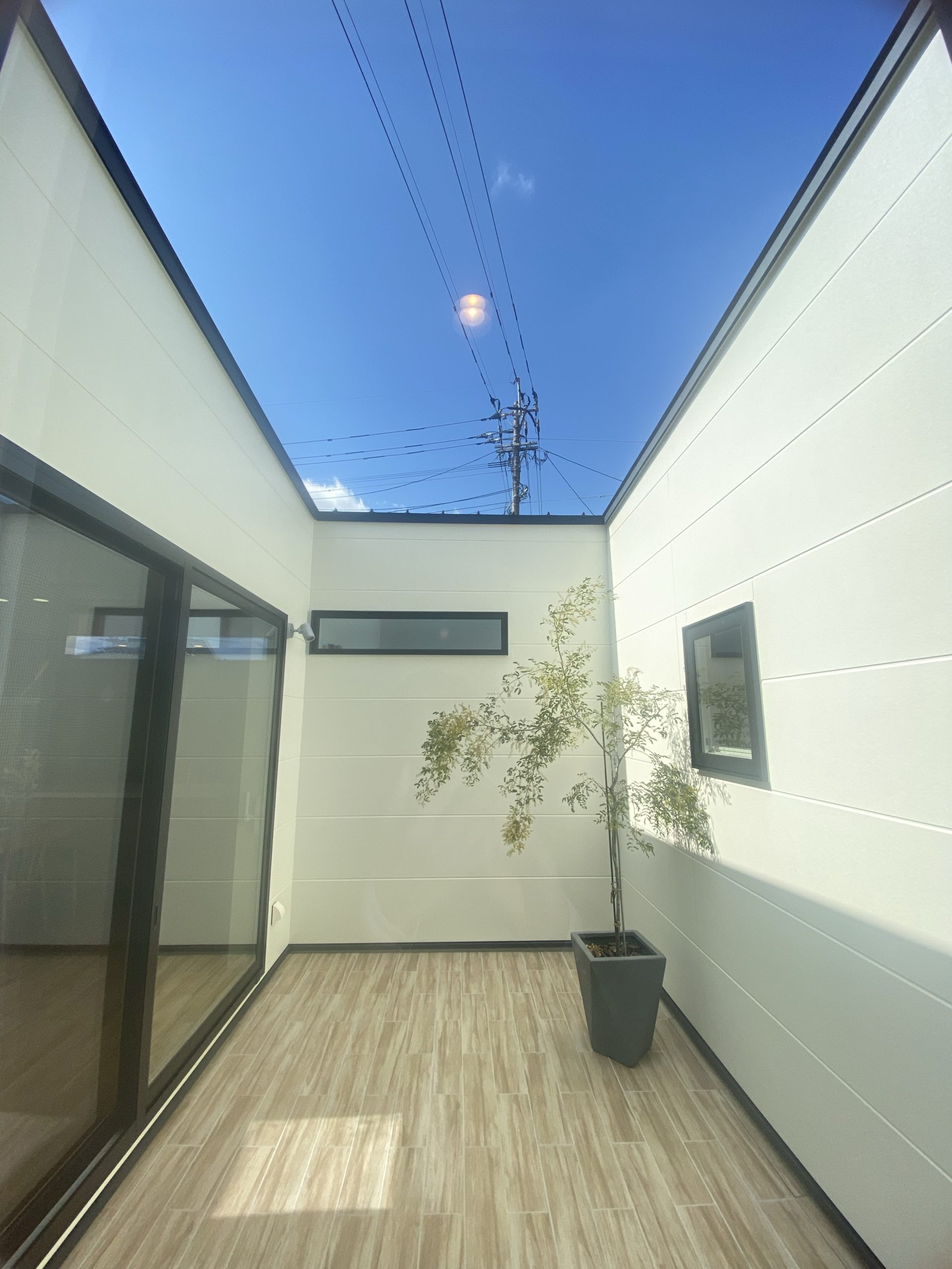 見所が豊富な間取りなんですが、外観はシンプルに仕上げ、近隣環境を捉え、間取りの中央に中庭があったり、回遊性抜群の使い勝手が良い平屋のハイパー住宅です。是非みなさんご見学のご予約下さい。担当営業マンが精一杯ご案内させていただきます。