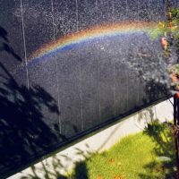 住宅事業部の福田です。 ひうみモデルの外部清掃時に ホースで水を撒い