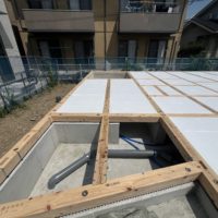 住宅事業部の福田です。 本日は現場確認に来ています。 暑い中、大工さ