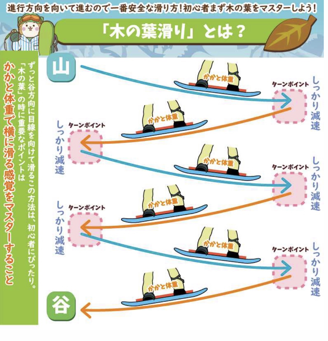 スムーズに降りられるように急斜面を前に、ちょっとビビりながらの木の葉滑りの挑戦しました^ ^