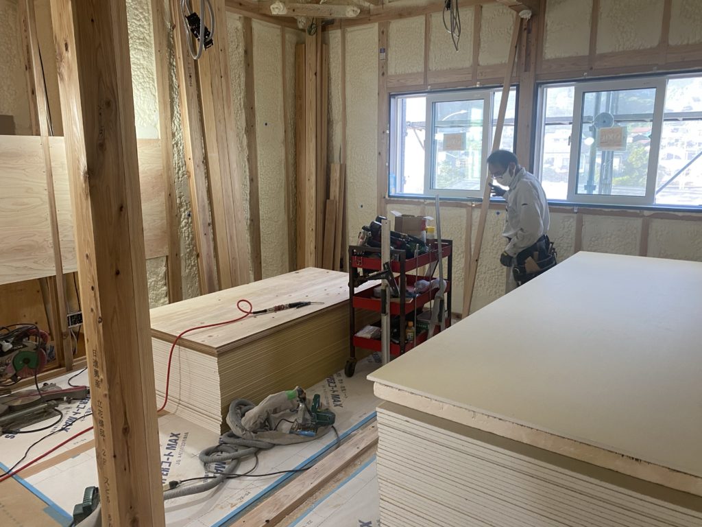 T様邸の現場です。大工さんがいらっしゃいました。