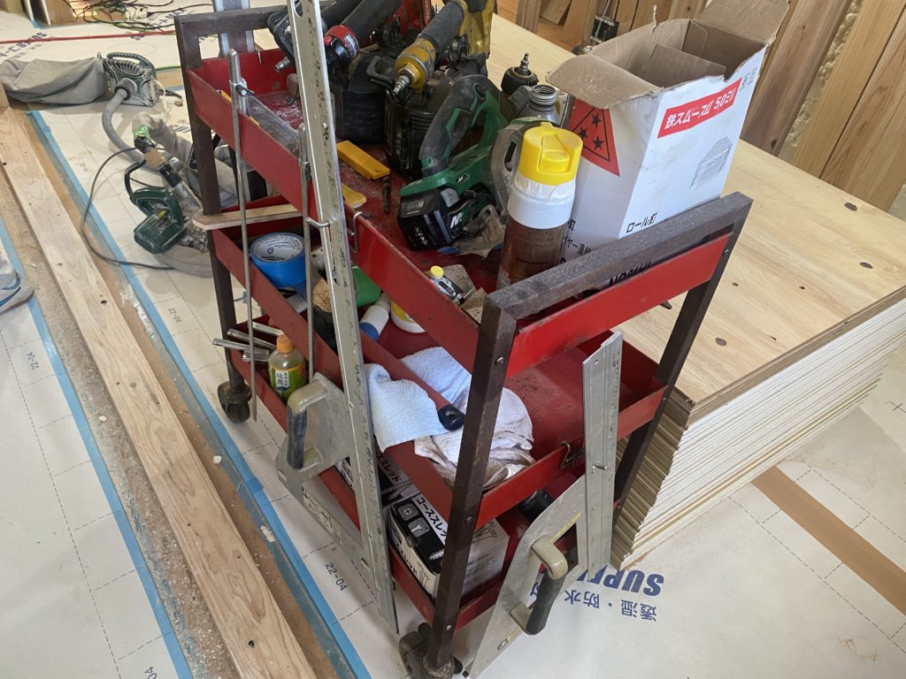 道具、ビス、養生テープ、その他道具がこのワゴンにまとめられていました。